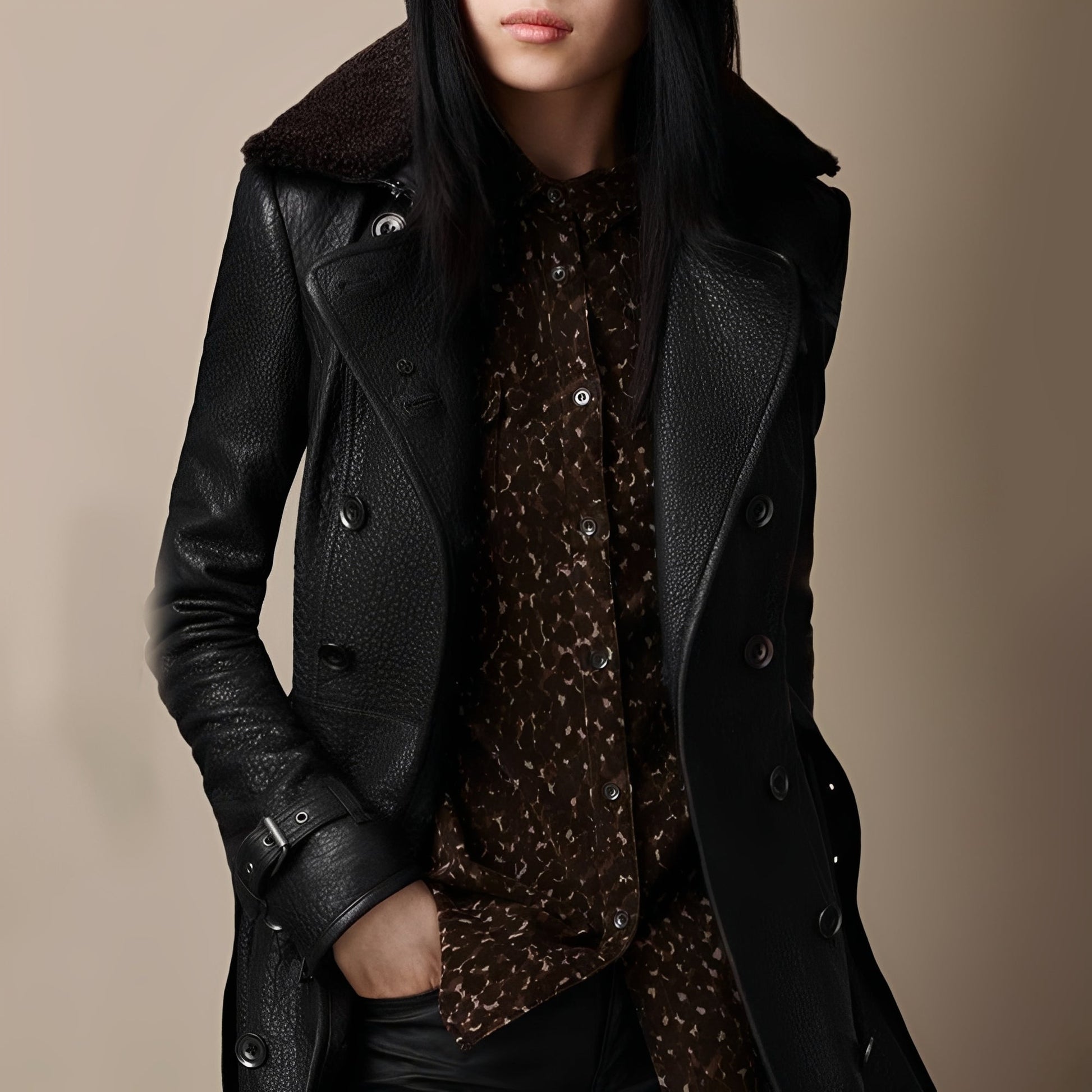 Luksusowy płaszcz skórzany Sylvaine dla kobiet łączy tradycyjną elegancję z nowoczesnym stylem. Wykonany z najwyższej jakości skóry, gwarantuje miękkość i elastyczność, jednocześnie podkreślając korzystnie sylwetkę. Jego ponadczasowy krój i starannie wykonane detale czynią go idealnym na formalne spotkania i eleganckie wieczory. Dzięki uniwersalnemu designowi łatwo komponuje się z sukienkami, spódnicami lub spodniami. To niezbędny element garderoby dla kobiet, które chcą czuć się stylowo i pewnie w każdej sytuacji.