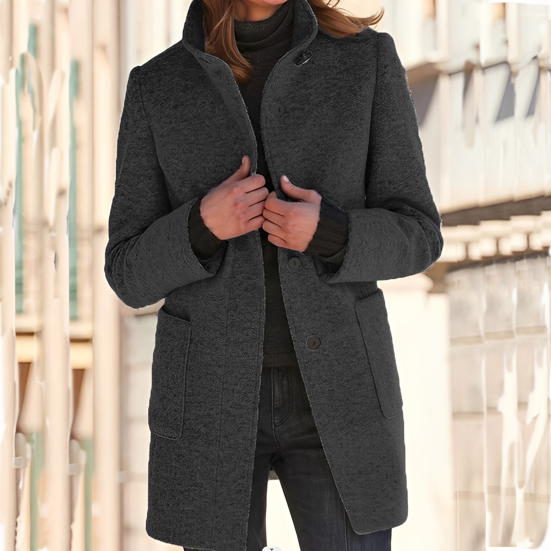 Niezbędny długi płaszcz zimowy, który łączy elegancję z ciepłem i wszechstronnością na co dzień.