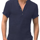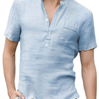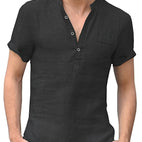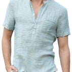 Oberon - Męska Koszula Lniana z Krótkim Rękawem