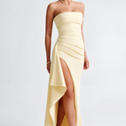 Velara - Maxi suknia bez ramiączek z dużym rozporkiem