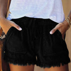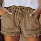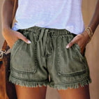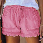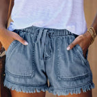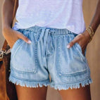 Viviana - Jednokolorowe szorty jeansowe z sznurkiem