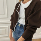Vivien – Kardigan z perłowym wykończeniem i frędzlami