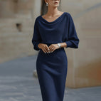 Wendy - Wyrafinowana sukienka midi z drapowanym dekoltem